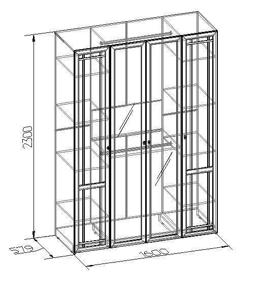 Шкаф платяной Шерлок 60. Дизайн классической спальной комнаты отлично украсит и дополнит практичный и удобный шкаф с четырьмя распашными дверями. Центральный отдел оборудован двумя штангами, на которых удобно разместятся вещи на вешалках. Штанги разделены полкой, все детали имеют возможность устанавливаться на необходимой высоте, для удобства размещения ваших вещей. Два боковых отдела для белья оснащены множеством регулируемых полочек.