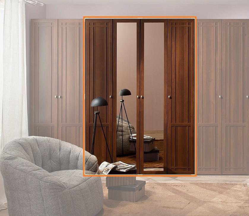 Фасады двух центральных дверей декорированы зеркалами, что, очень удобно, а также зрительно увеличивает пространство комнаты. Две боковых двери облицованы деревянной раскладкой.