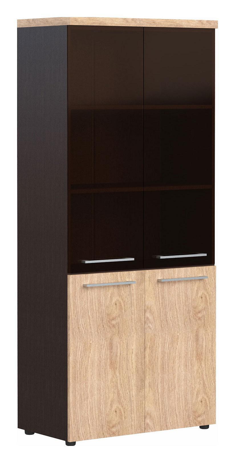 Любите порядок на рабочем месте? Тогда вам обязательно стоит обратить свое внимание на шкаф-витрина Alto AHC 85.7 , созданный профессионалами компании Skyland. Коллекция «Alto» отличается сдержанностью и простотой форм, при этом параметры модели (ширина 850 мм, глубина 456 мм, высота 1968 мм), а также комплектация (2 полки, 4 дверцы) позволят расположить даже большое количество важных для работы аксессуаров. В качестве материала для изготовления корпуса был выбран износостойкий ЛДСП Е1 (оттенок «венге магия, дуб девон», верхний слой матовый), а значит изделие прослужит вам не один сезон. Приятных вам покупок!