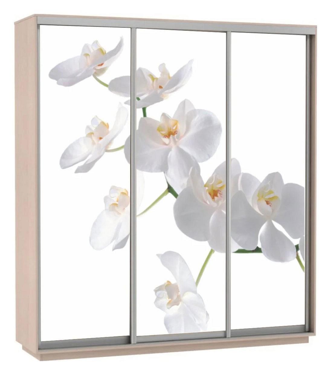 Шкафы-купе 3-х дверный Экспресс Фото Трио Орхидея белый с цветным рисунком