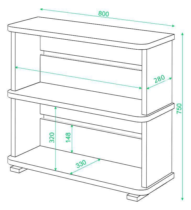 Небольшой модульный стеллаж с закругленными углами. Подходит для зонирования помещений.