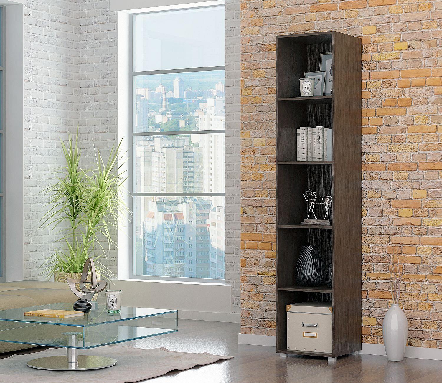 У вас много книг или вы хотите интересно обыграть интерьер, украсив его эксклюзивным декором? Прекрасным решением будет MAS_STE-PRAIM-51-VM - стеллаж-колонка Прайм-51, созданный представителями бренда МФ Мастер в рамках коллекции «Прайм-51». Благодаря эргономичной форме, он займет совсем немного места, при этом вы сможете разместить в нем все необходимое (ширина стеллажа 370 мм, высота 1808 мм, глубина 420 мм). Стеллаж выполнен из современных материалов (ЛДСП Е1) и имеет корпус выигрышного оттенка (венге). Производитель предлагает за цену 4899 руб. стеллаж, в комплекте с которым идут 4 полки.