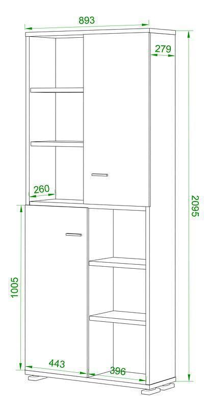 2 дверцы, 9 полок