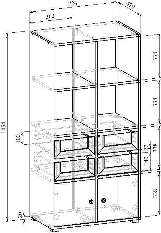 Компоненты, входящие в комплект 2 полки, 4 ящика