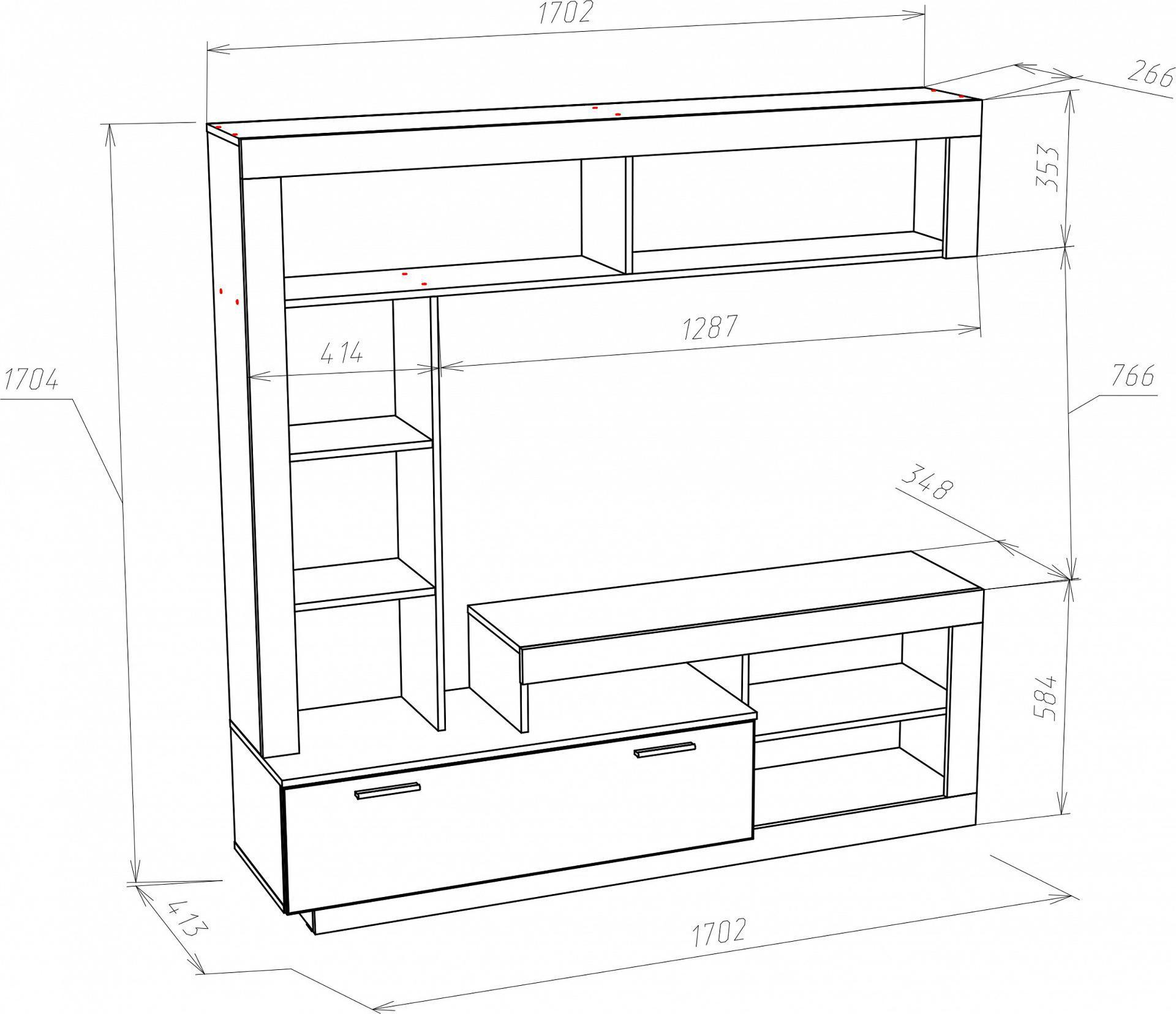 Размер ниши под ТВ - 1287x766 мм.