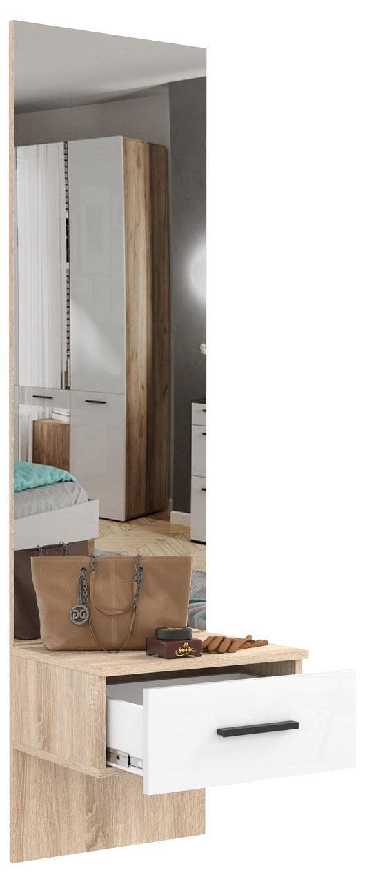Стенка для прихожей Эдмонтон 95S HSB_95S_Edmonton создана востребованным производителем мебели Hesby. Она относится к серии «Эдмонтон» и изготовлена в соответствии с общепринятыми стандартами качества. Предлагаемая рыночная цена за данную комплектацию составляет 11730 руб. Матовый корпус изготовлен из износостойкого материала (ЛДСП Е1), отличающегося долговечностью и легкостью в уходе, а его оттенок («дуб сонома») гармонично сочетается с расцветкой и фактурой фасада (МДФ, цвет «белый»). Стенка для прихожей Эдмонтон 95S включает в себя следующие компоненты: вешалка-полка - 450x266x1622 мм зеркало настенное - 450x320x1622 мм тумба - 900x346x360 мм. Желаем приятных покупок на нашем сайте!