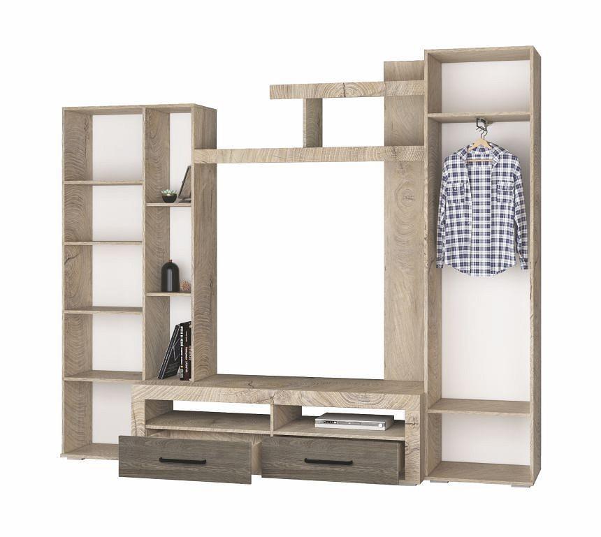 Ее вместительные модули и открытые полки предоставляют достаточно пространства для хранения и помогают соблюдать порядок, а ультрамодное сочетание цветов в оформлении придает гостиной особый стиль.