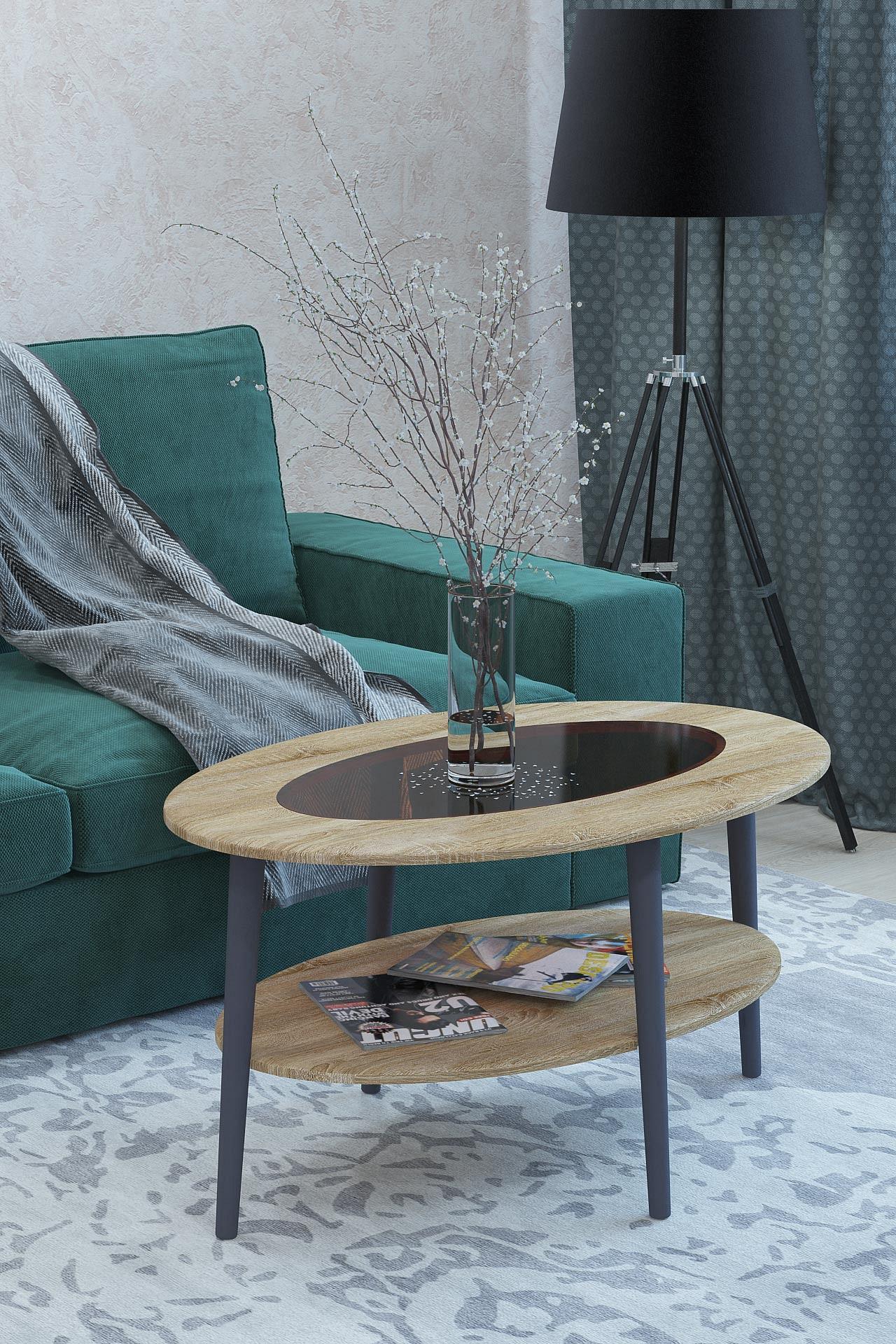 Стильный овальный журнальный столик со стеклом станет прекрасным дополнением к интерьеру любой гостиной. Оригинальное цветовое решение стола станет изюминкой гостиной и подчеркнет дизайн помещения.