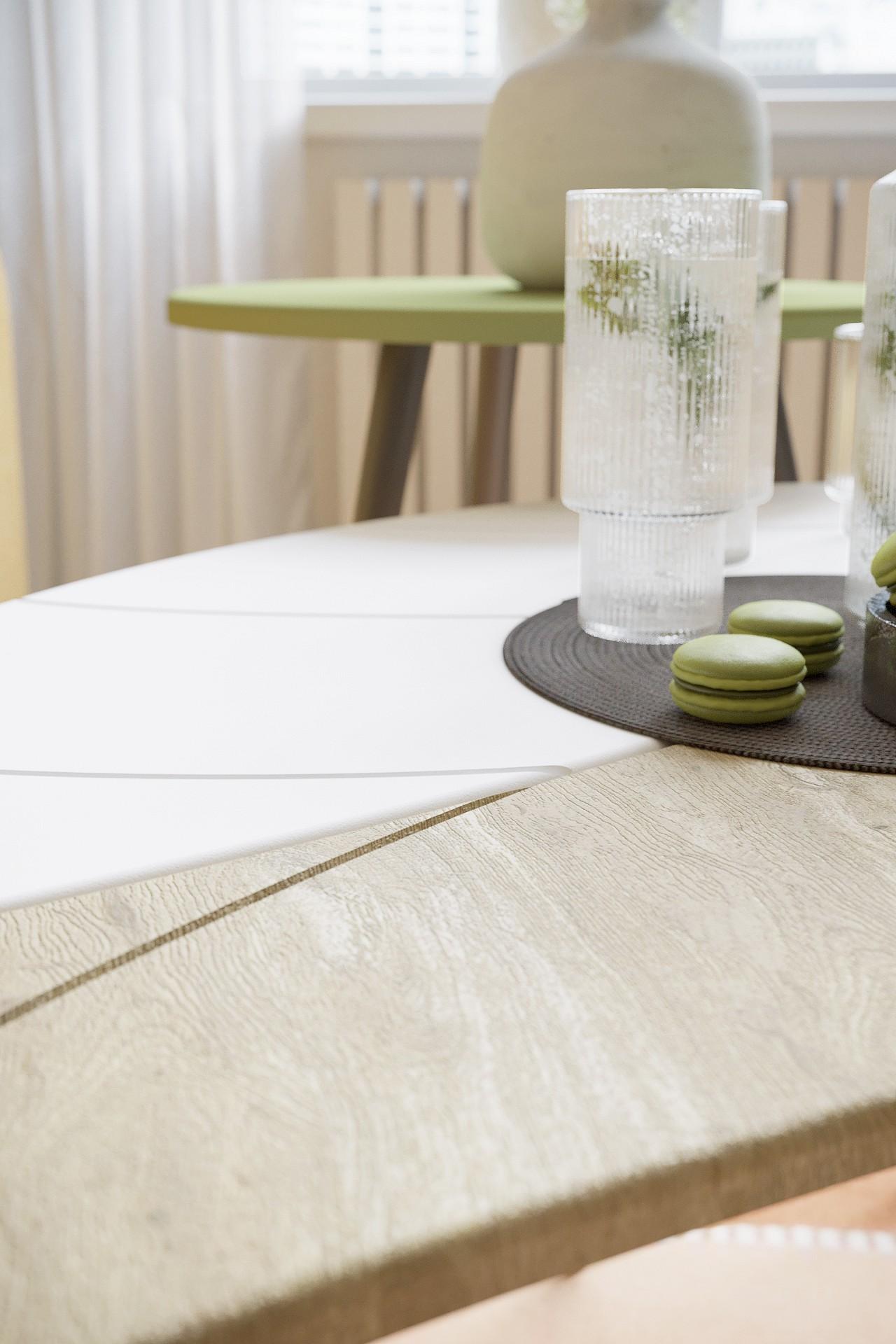 Журнальный стол вносит в интерьер гостиной комфорт и подчеркивает его эстетику. Особенностью дизайнерского решения журнального стола Лайм является оригинальное сочетание фрезеровки столешницы в форме листа дерева и текстуры декоративного покрытия. Облегченные опоры черного цвета выполнены из дерева.