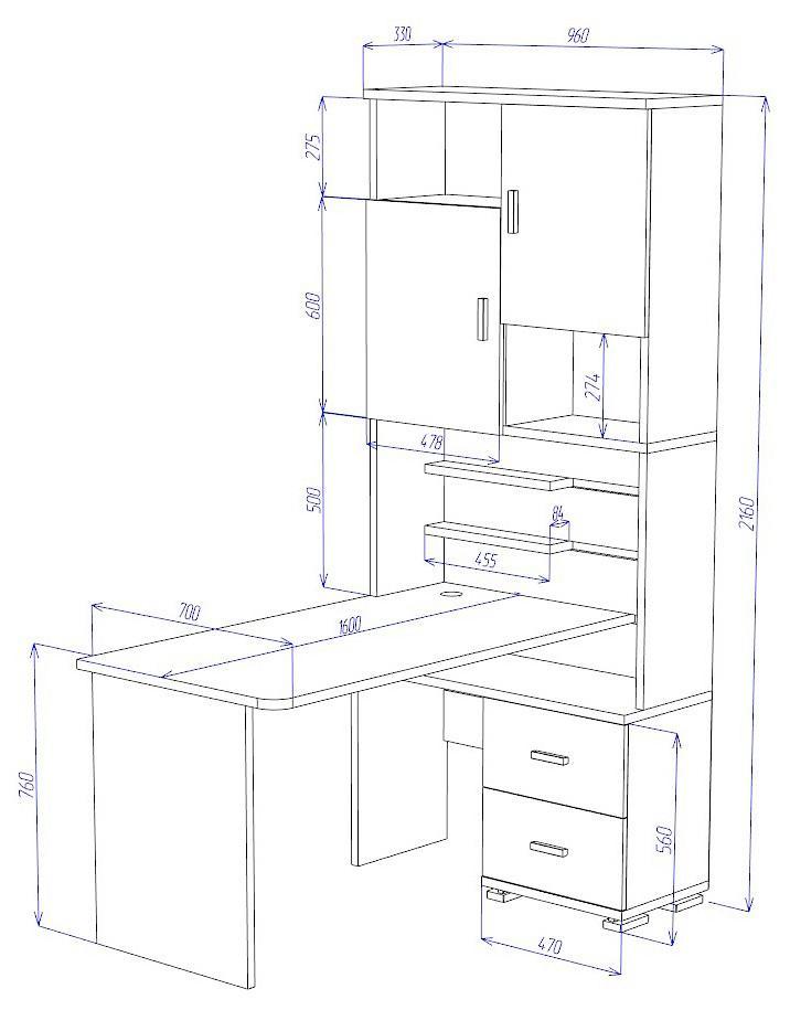 Компоненты, входящие в комплект стеллаж:2 дверцы,2 ящика,5 полок