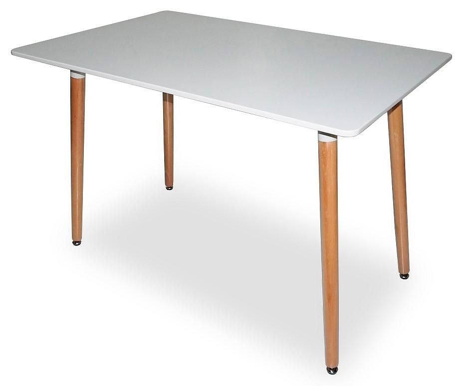 Крышка стола выполнена из высокотехнологичного МДФ, покрашена в белый цвет. Ножки выполнены из натурального дерева (массив бука).