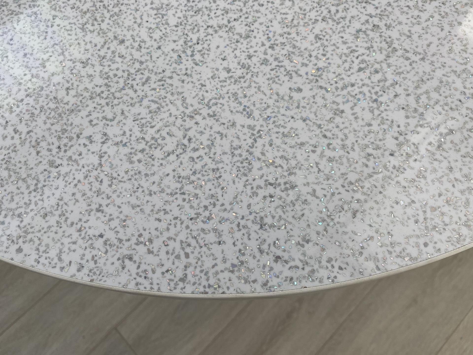 Металлическое основание окрашено порошковой краской, столешница - плита ЛДСП (22 мм), покрыта HPL пластиком (2мм), кромка - ПВХ (2мм).