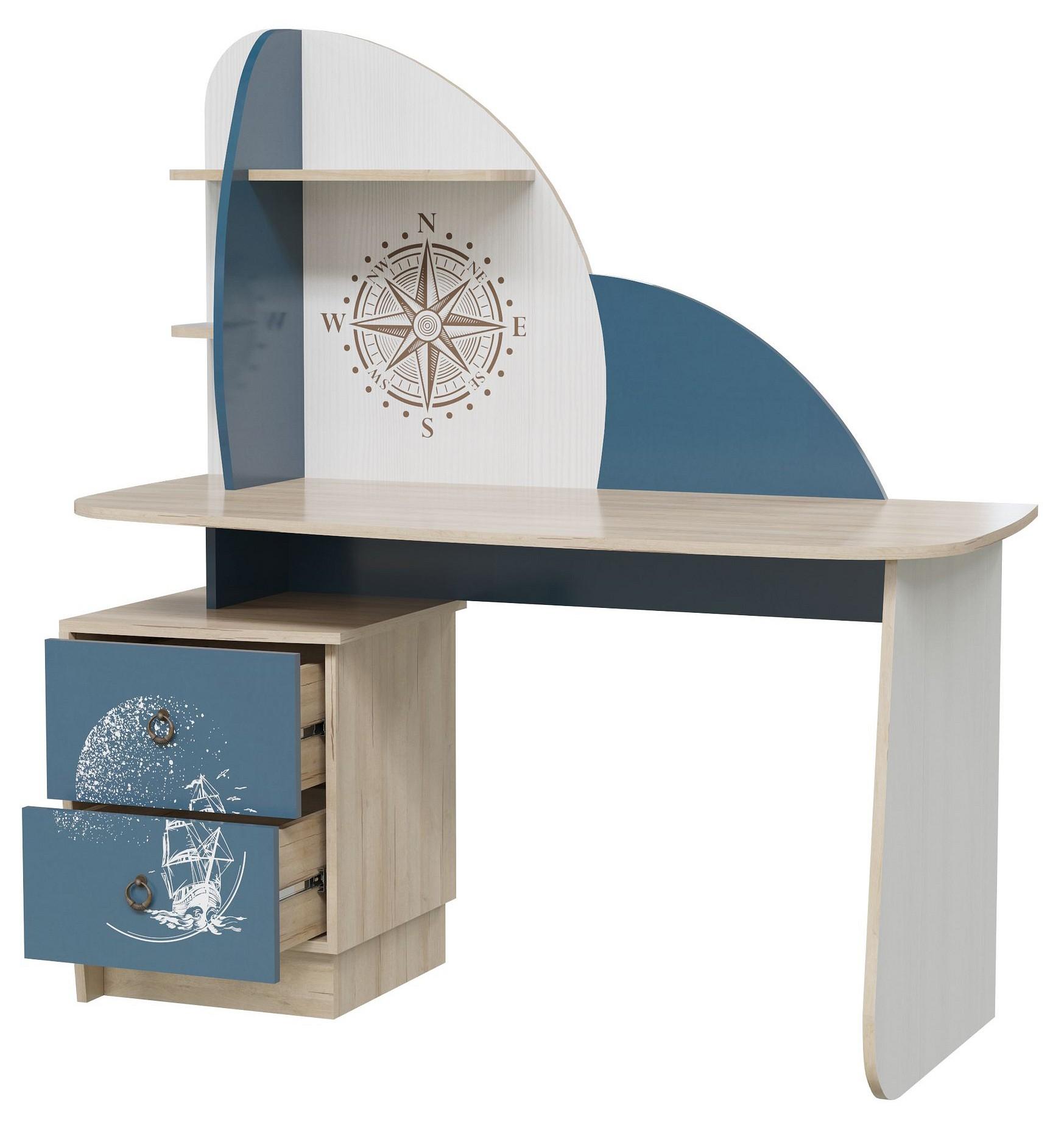 Ребенку необходима правильно организованная рабочая зона. Компания Гранд-Кволити в рамках коллекции «Бриз» создала функциональную и практичную модель – стол письменный Бриз 6-0608 TRM_ML654870982, который вы можете купить на нашем сайте за 11790 руб. 2 ящика,3 полки – этого комплекта достаточно, чтобы выполнение домашних заданий или рукоделие приносили удовольствие, а заниматься своими делами было комфортно. Размеры стола, матовый корпус которого изготовлен из ЛДСП Е1, позволят поставить стол даже в маленькой комнате (высота 1420 мм, ширина 650 мм), а приятный для глаз оттенок «синий с рисунком» отлично впишется практически в любой интерьер. Желаем вам приятных покупок!