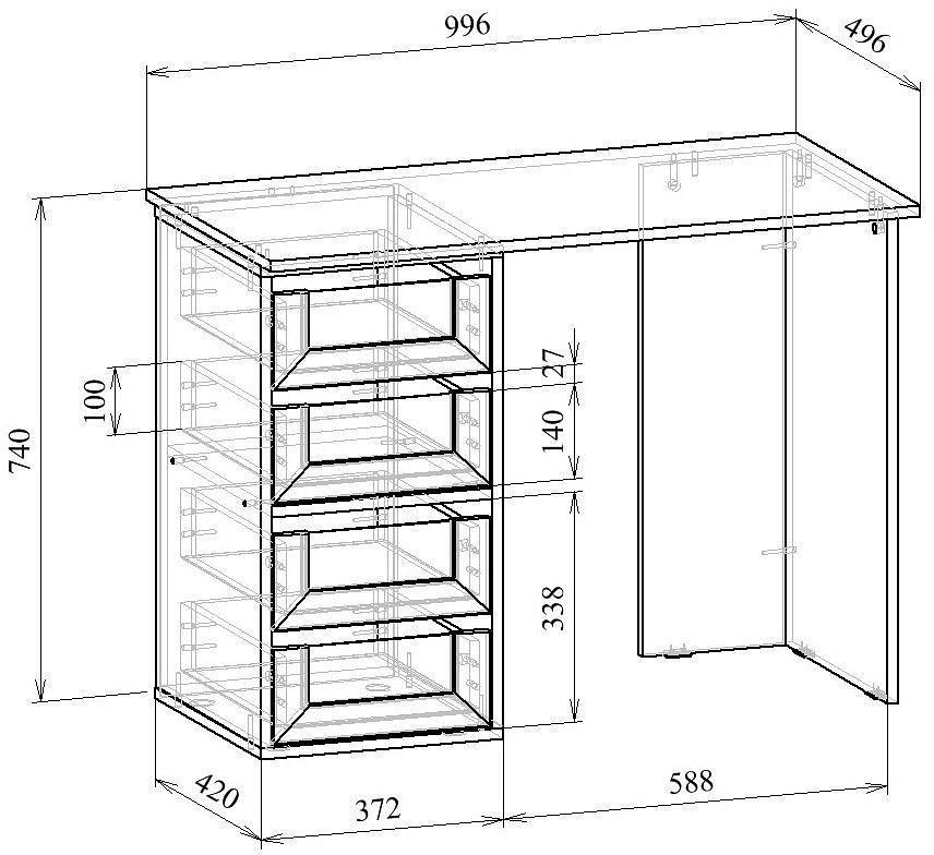 Работа или развлечения – Стол письменный Прайм-33 MAS_STL-PRAIM-33-DM, созданный брендом 2735035, отлично подойдет для выполнения любых задач. Эта модель входит в серию «Прайм-33» и способен подстроиться под потребности каждого члена семьи. Благодаря оптимальным размерам изделия (Х996Х740 мм) вы сможете с комфортом заниматься любимыми и важными делами. Базовая комплектация включает в себя непосредственно письменный стол, тумбочка: 4 ящика. Для изготовления корпуса был выбран ЛДСП Е1 в оттенке дуб молочный, завершает дизайн матовый верхний слой, гармонично сочетающийся со столешницей. Купить данную модель вы можете по привлекательной цене, равной 9299 руб.