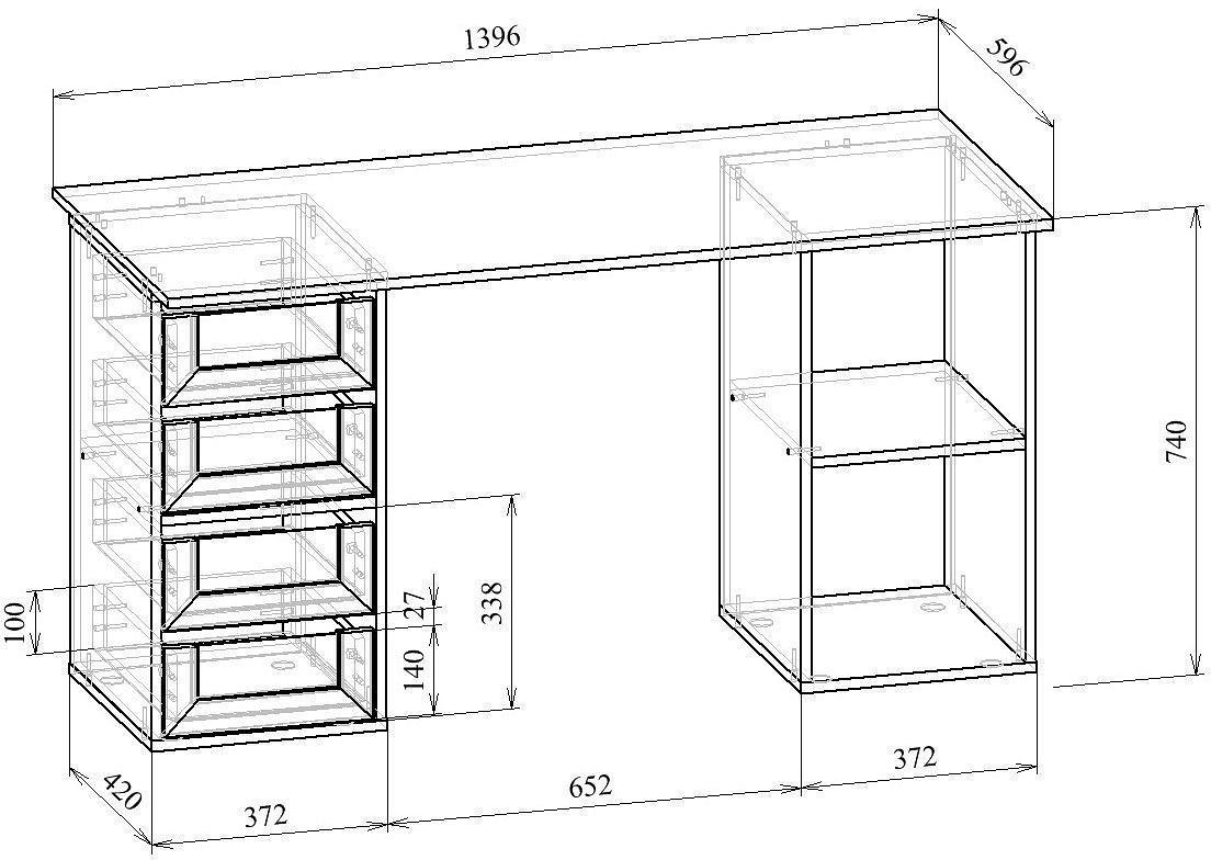 Компоненты, входящие в комплект тумбочка: 4 ящика,тумбочка: 1 полка
