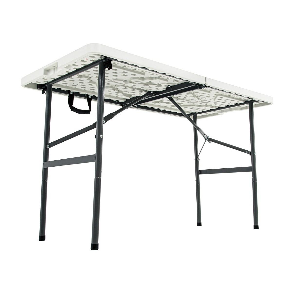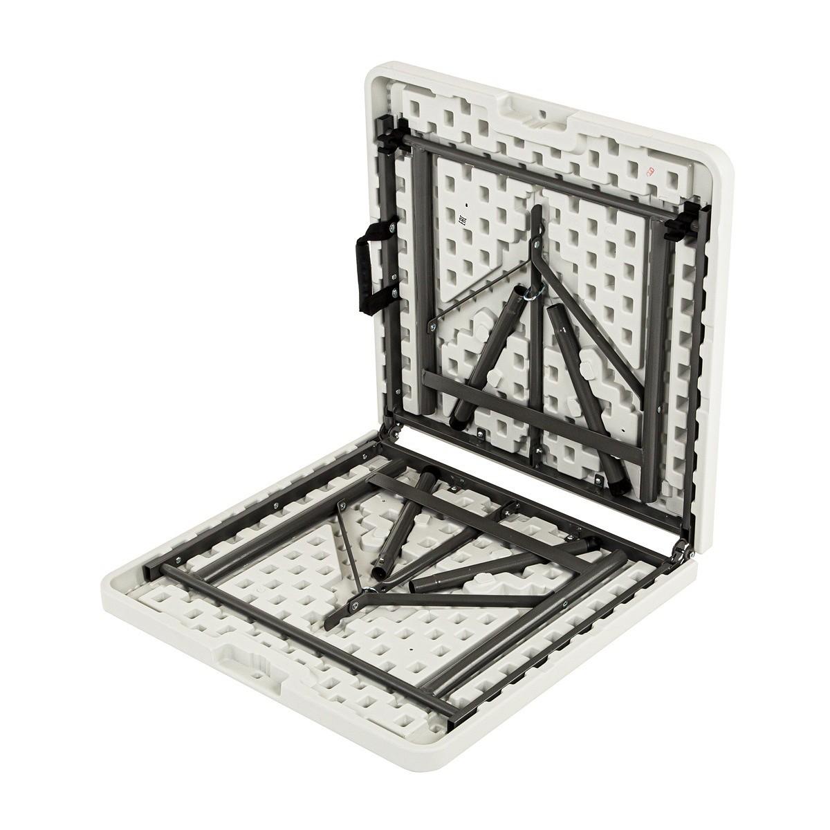 Изделие выполнено из качественного пластика с каркасом из стали, а ножки в разложенном состоянии надежно фиксируются. Его можно сложить в одно движение, а в собранном состоянии он не займет много места внутри помещения или в багажнике автомобиля. Также складной стол Green Glade F122 имеет удобную ручку для переноски в сложенном виде.