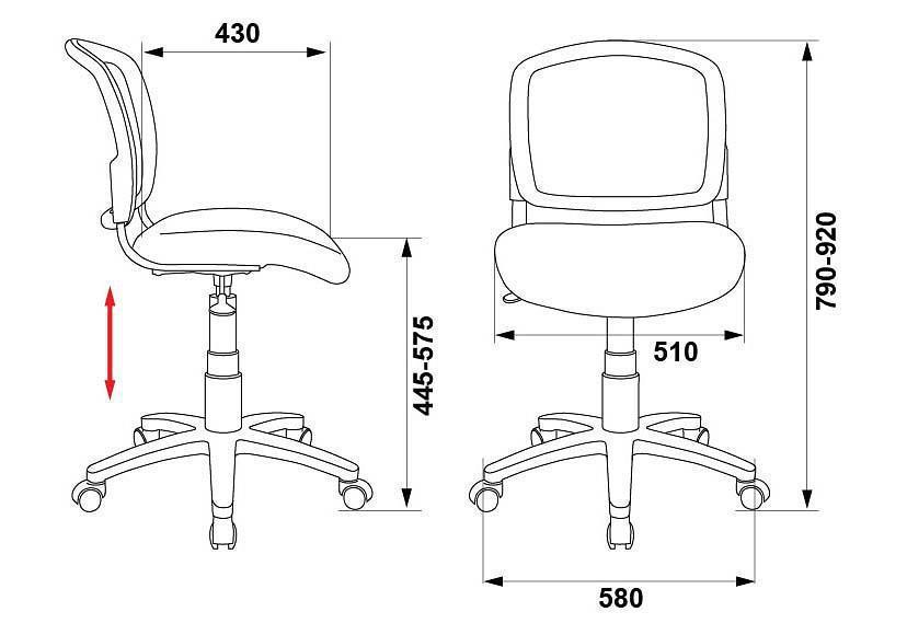 регулировка высоты (газлифт), эргономичная спинка (сетка), колесики