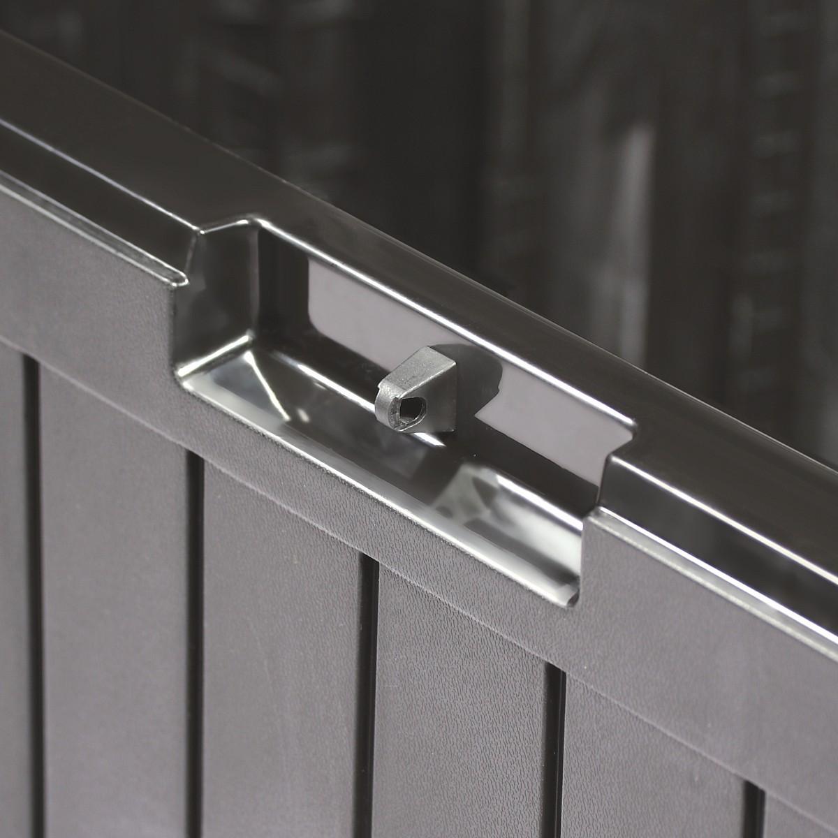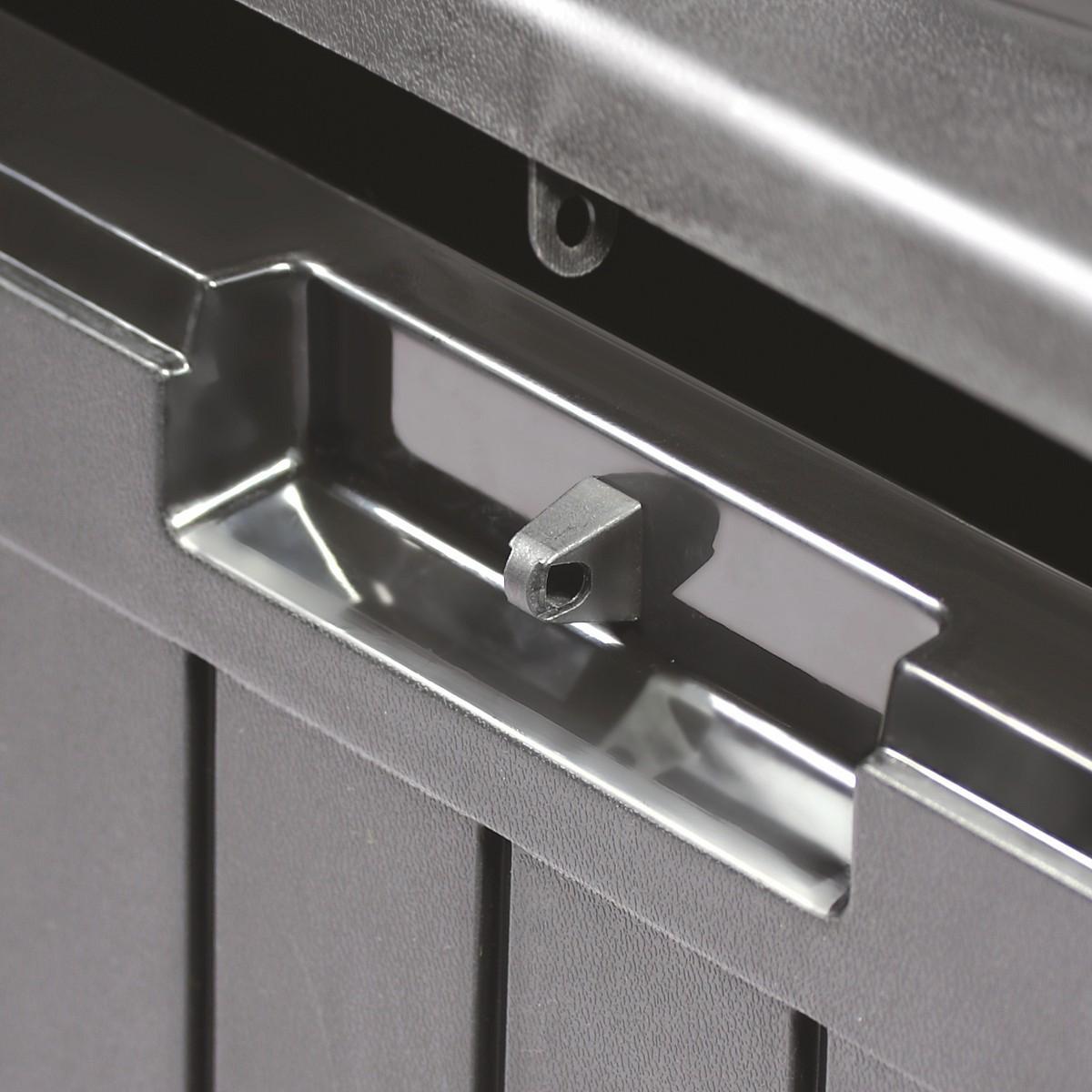 Дополнительными преимуществами являются легкая сборка, а также наличие ручек для переноски с двух сторон и возможность прикрепления навесного замка.