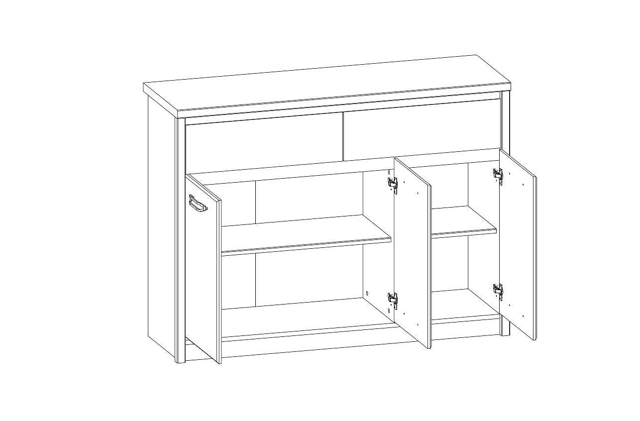2 полки,2 ящика,3 дверцы
