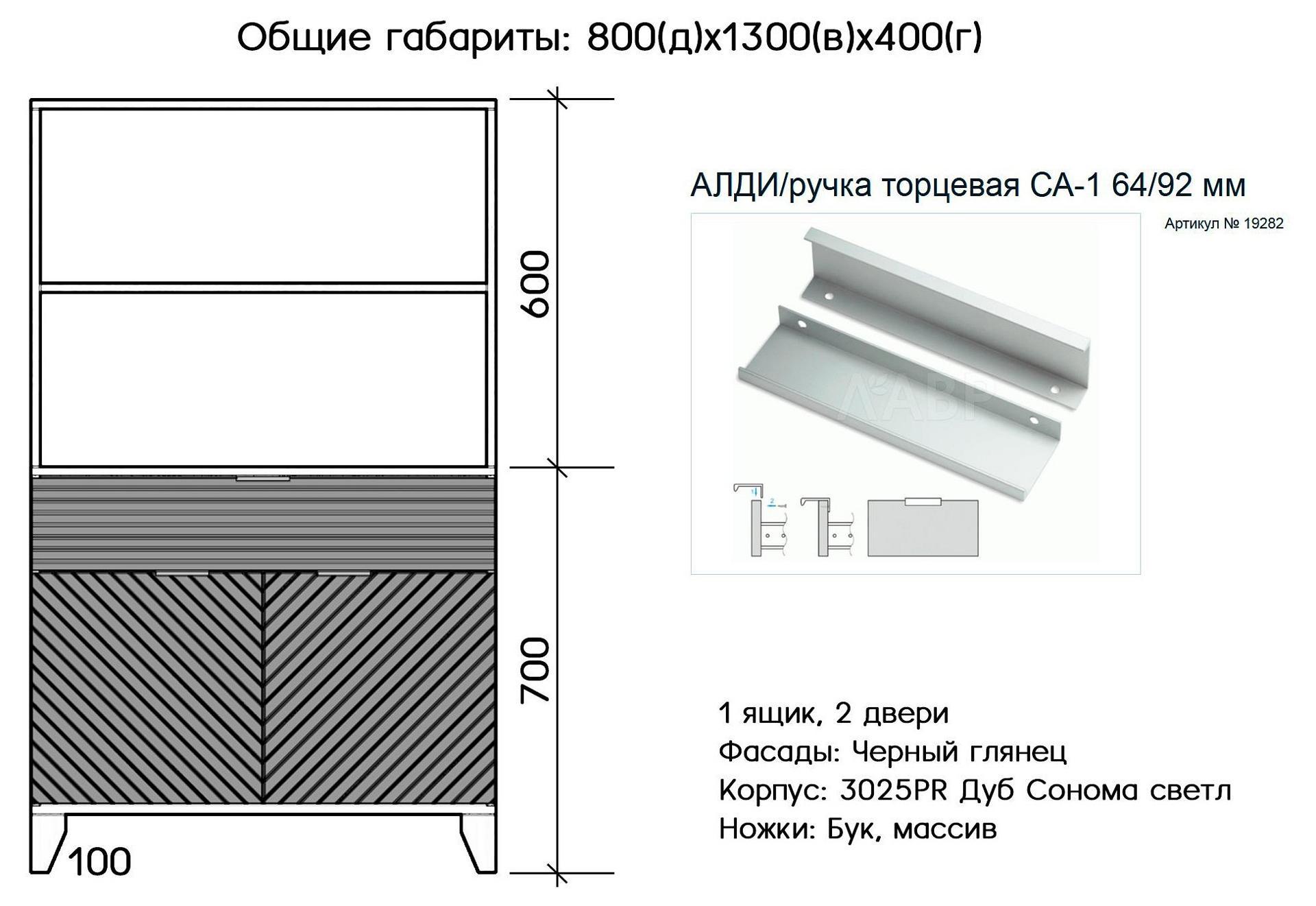 1 полка, 1 ящик, 2 дверцы