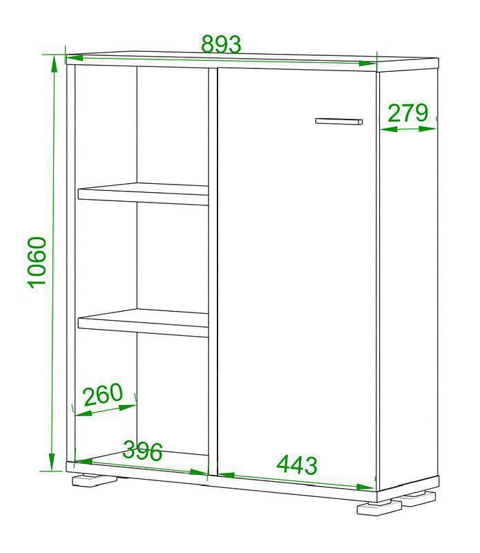 1 дверца, 4 полки