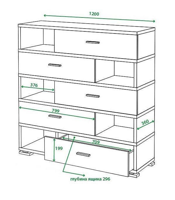 Компоненты, входящие в комплект 4 полки, 5 ящиков