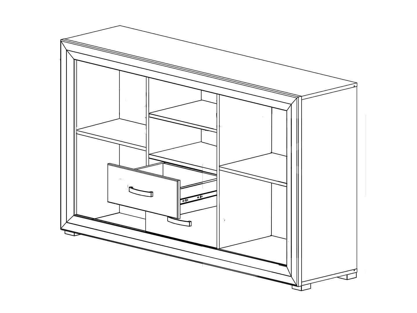 2 дверцы, 2 ящика, 6 полок