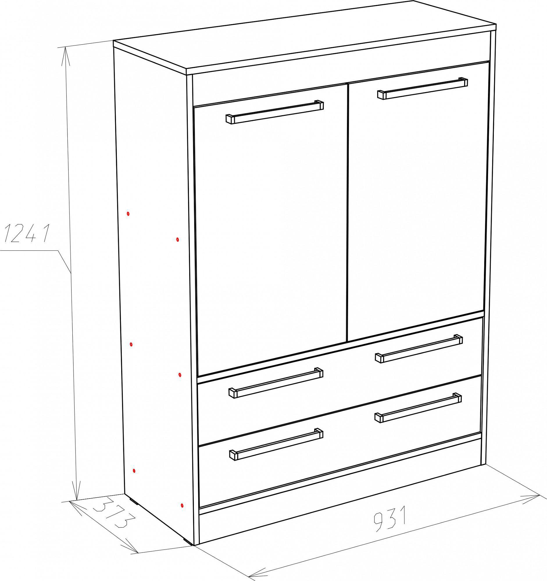 1 полка, 2 дверцы, 2 ящика