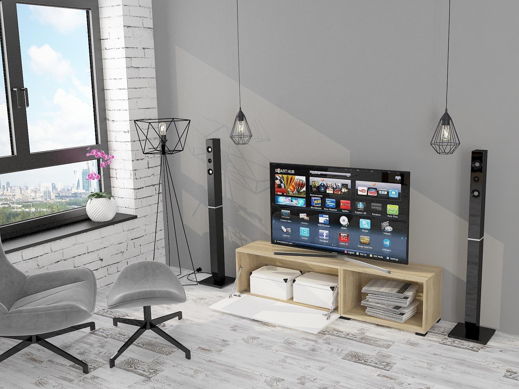 Когда все вещи лежат на своих местах – это залог уютного и аккуратного интерьера. Тем приятнее, когда зоной для хранения становится вместительная и надежная тумба под ТВ Эдмонтон TV1 HSB_TV1_Edmonton. Эта модель изготовлена компанией Hesby и относится к коллекции Эдмонтон. Матовый корпус тумбы сделан из популярного материала (ЛДСП Е1) и окрашен в благородный оттенок «дуб сонома». Тумба под ТВ Эдмонтон TV1 стоит 4600 руб.