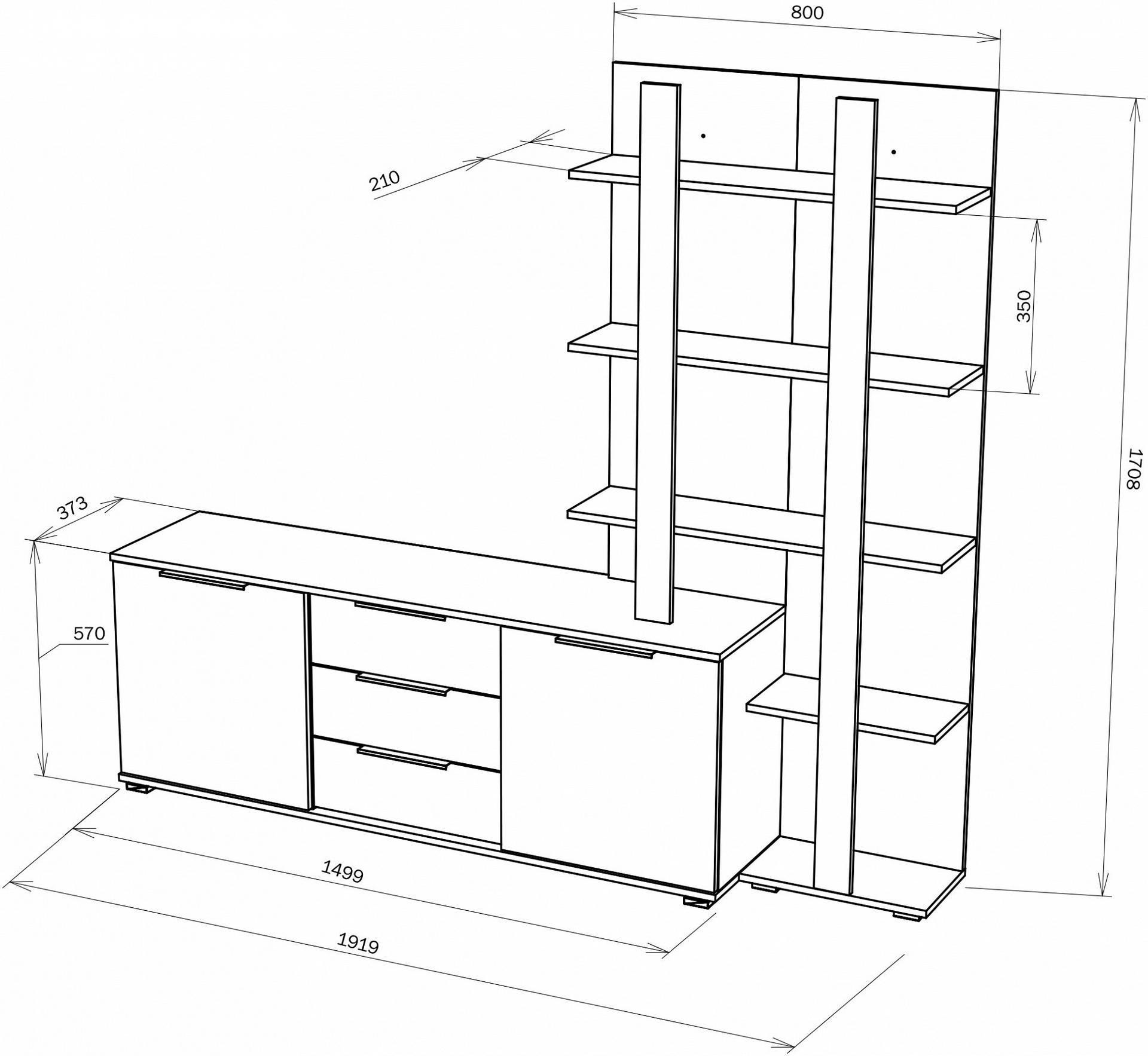 2 дверцы, 3 ящика, 7 полок