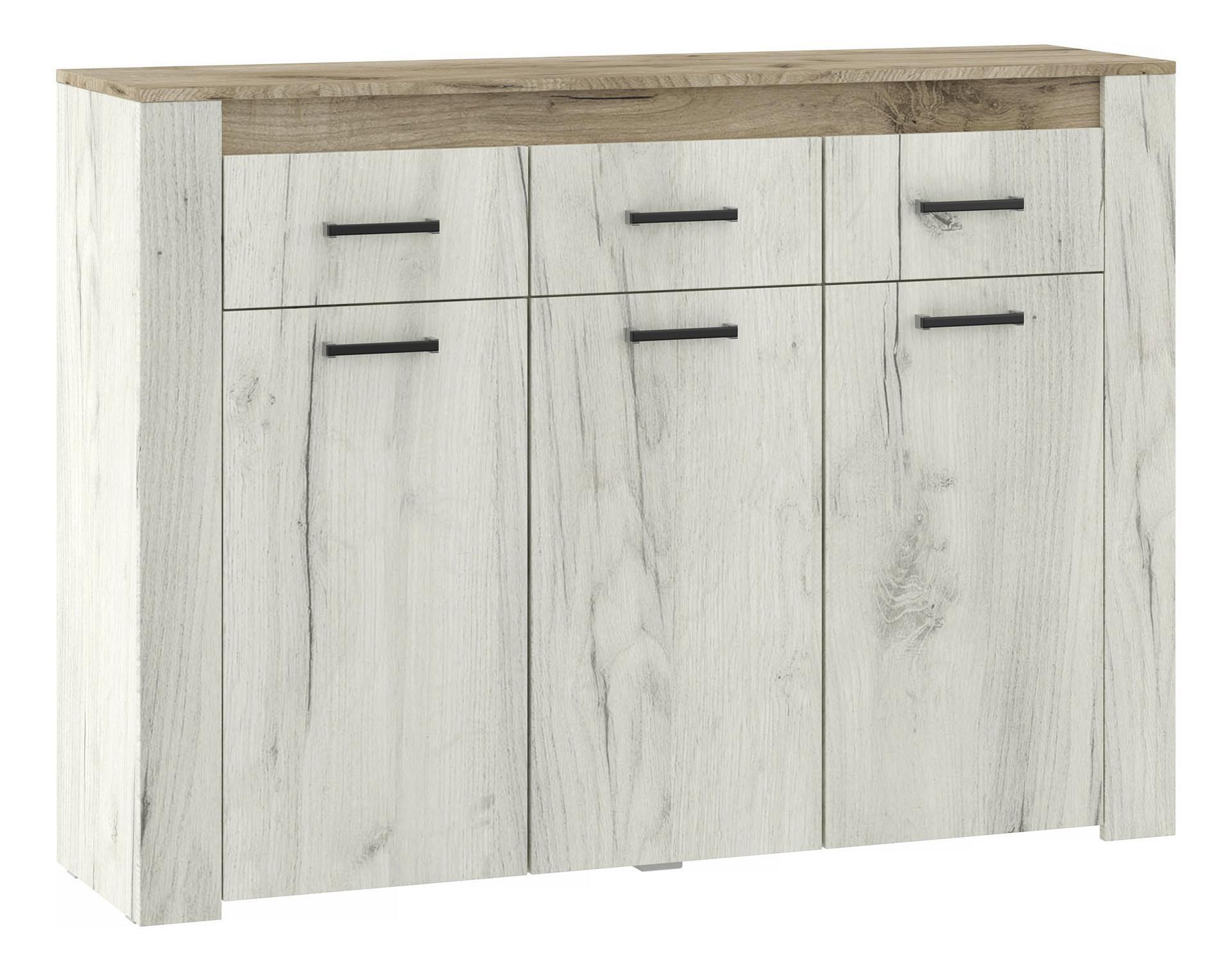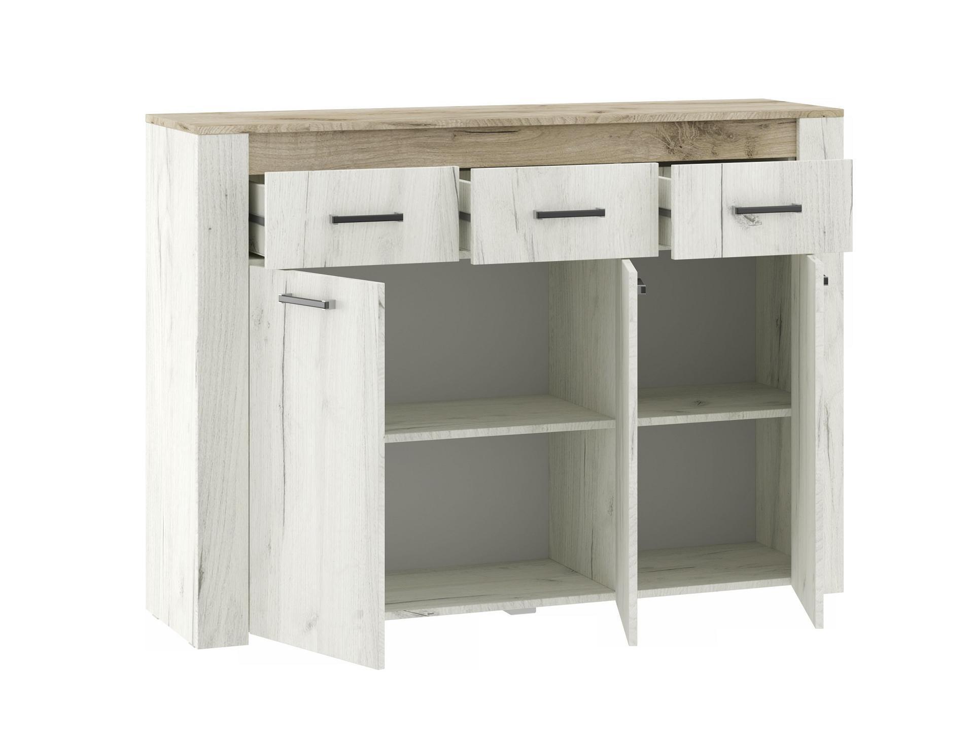 Порядок в доме – это залог красивого и аккуратного интерьера. Тем приятнее, когда зоной для хранения является вместительная и практичная Тумба Прага КМ-136 . Данная модель создана компанией НК-Мебель и относится к коллекции «Прага». Матовый корпус изделия сделан из износостойкого материала ( ЛДСП Е1) и окрашен в благородный оттенок «дуб белый крафт, дуб серый крафт». Производитель предлагает следующую комплектацию тумбы: 2 полки, 3 дверцы, 3 ящика.