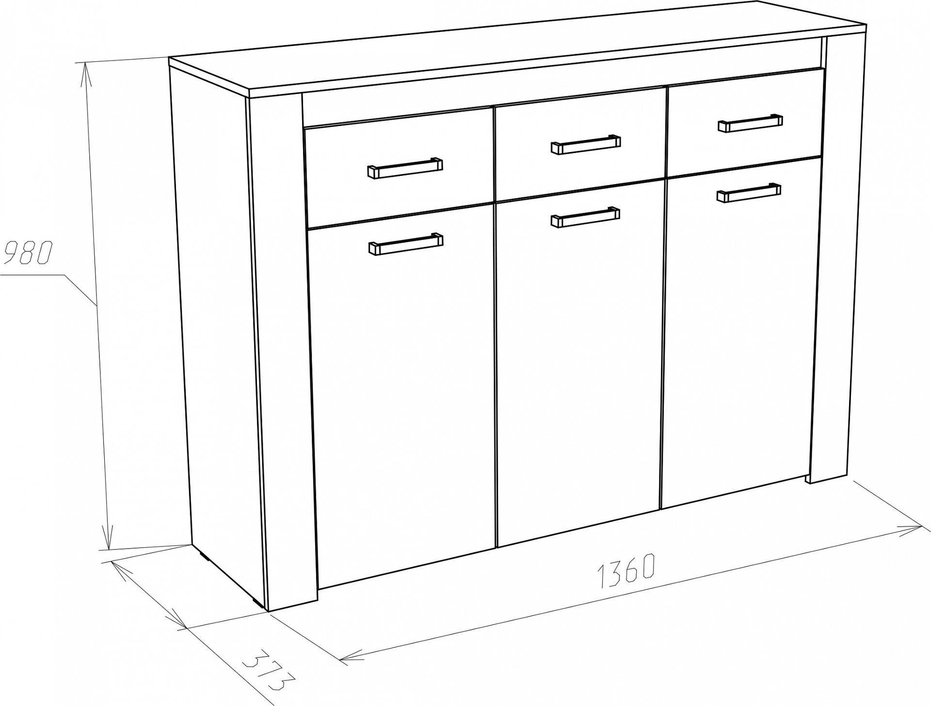 2 полки, 3 дверцы, 3 ящика