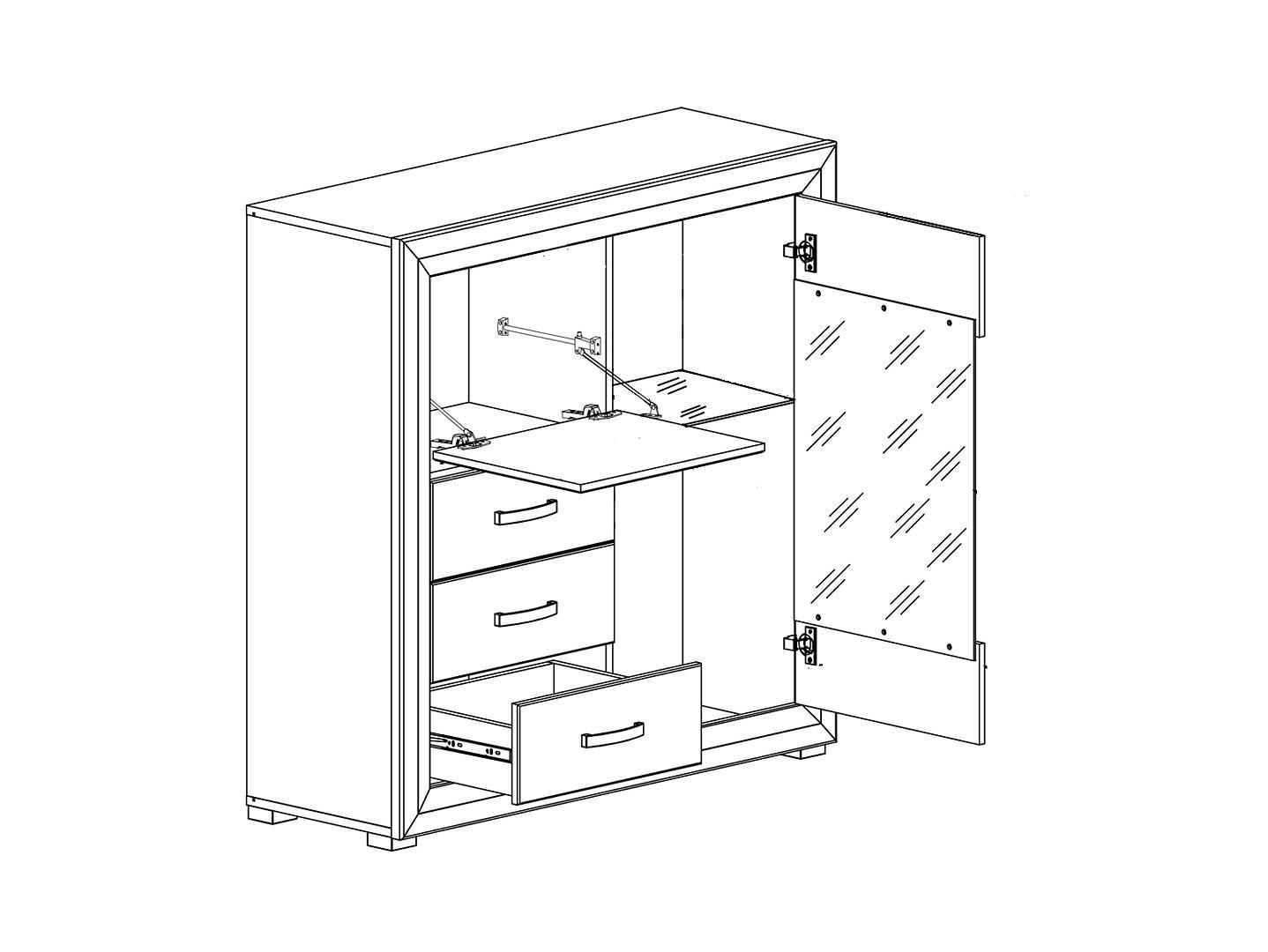 1 полка,2 дверцы,3 ящика,подсветка