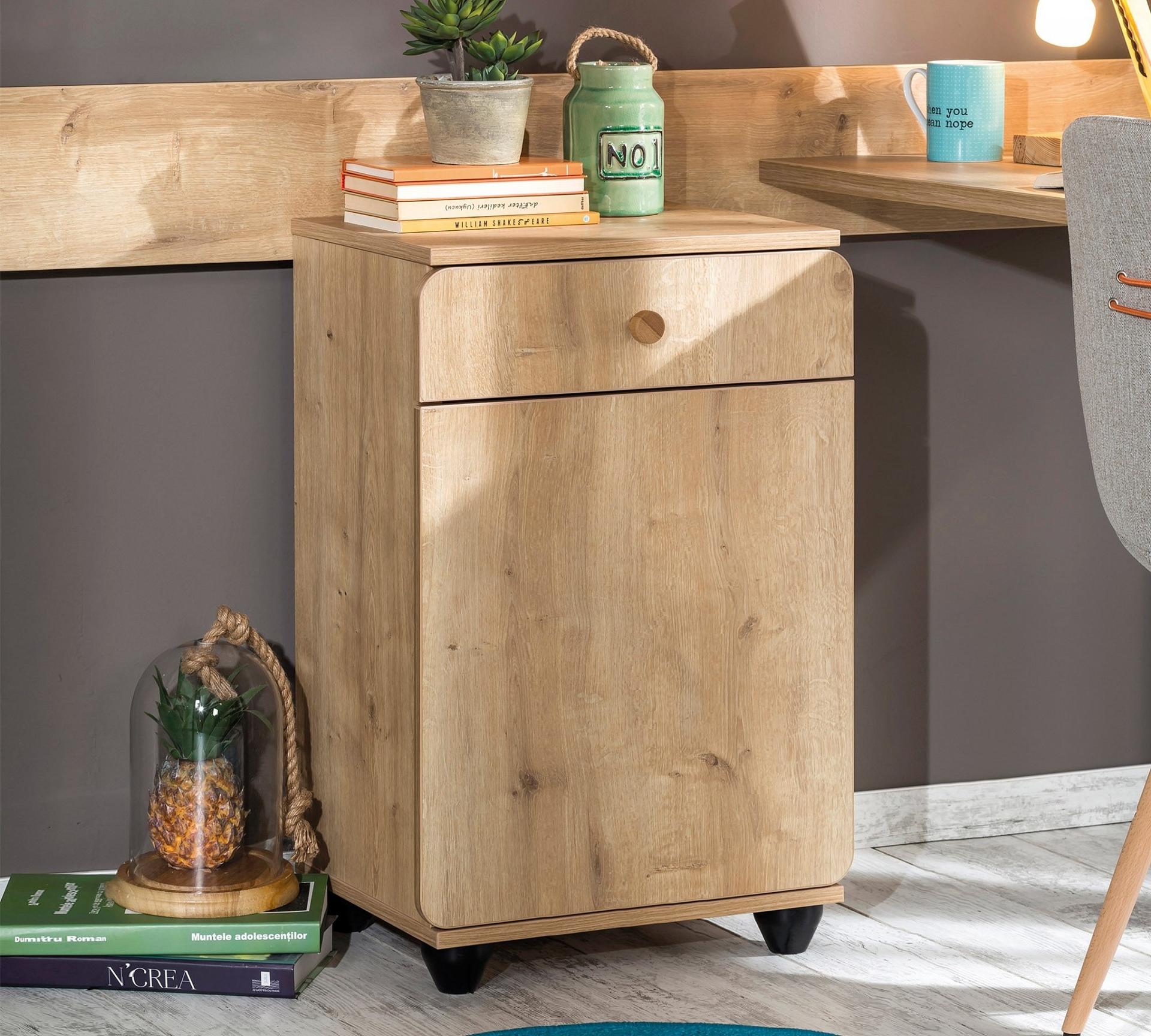Журналы, игрушки и многочисленные материалы для творчества – этими вещами изобилует каждая детская. Упорядочить их поможет тумбочка Compact Mocha 20.30.1602.00 CLK_330192, которая разработана брендом Cilek в рамках коллекции «Mocha». Данный комплект стоит 14390 руб. и имеет следующие параметры: ширина 440 мм, глубина 370 мм и высота 710 мм. 1 дверца, 1 полка, 1 ящик делают тумбочку вместительной и функциональной, а благодаря прочному и практичному ЛДСП Е1, из которого сделан матовый корпус, эта модель прослужит вам много лет. Фасад окрашен в ненавязчивый оттенок (орех) и прекрасно гармонирует с остальной мебелью из данной коллекции.