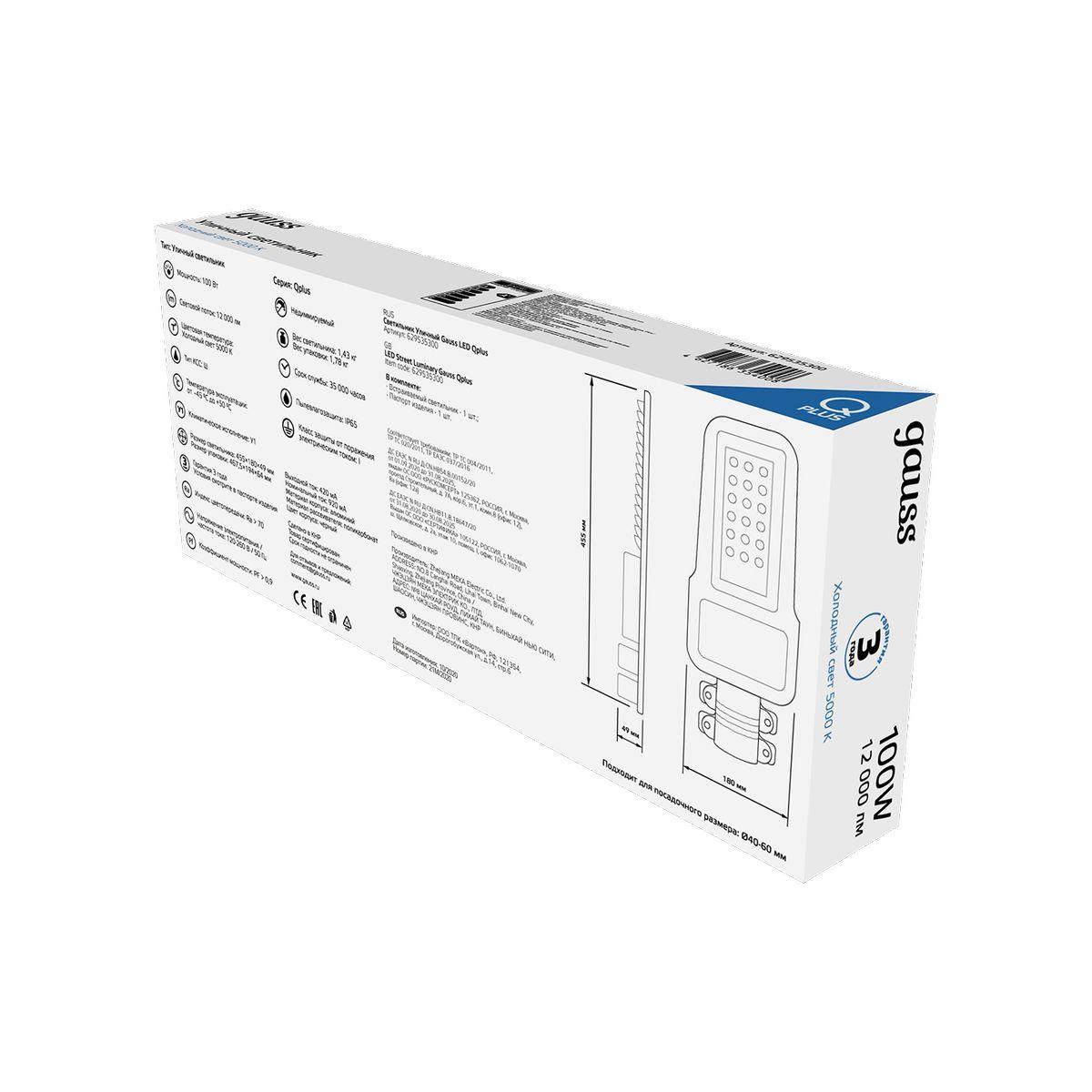 Уличный светодиодный консольный светильник Gauss Qplus 629535300