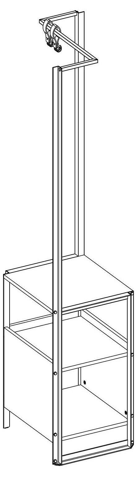 1 штанга для вешалок,2 крючка, 3 полки