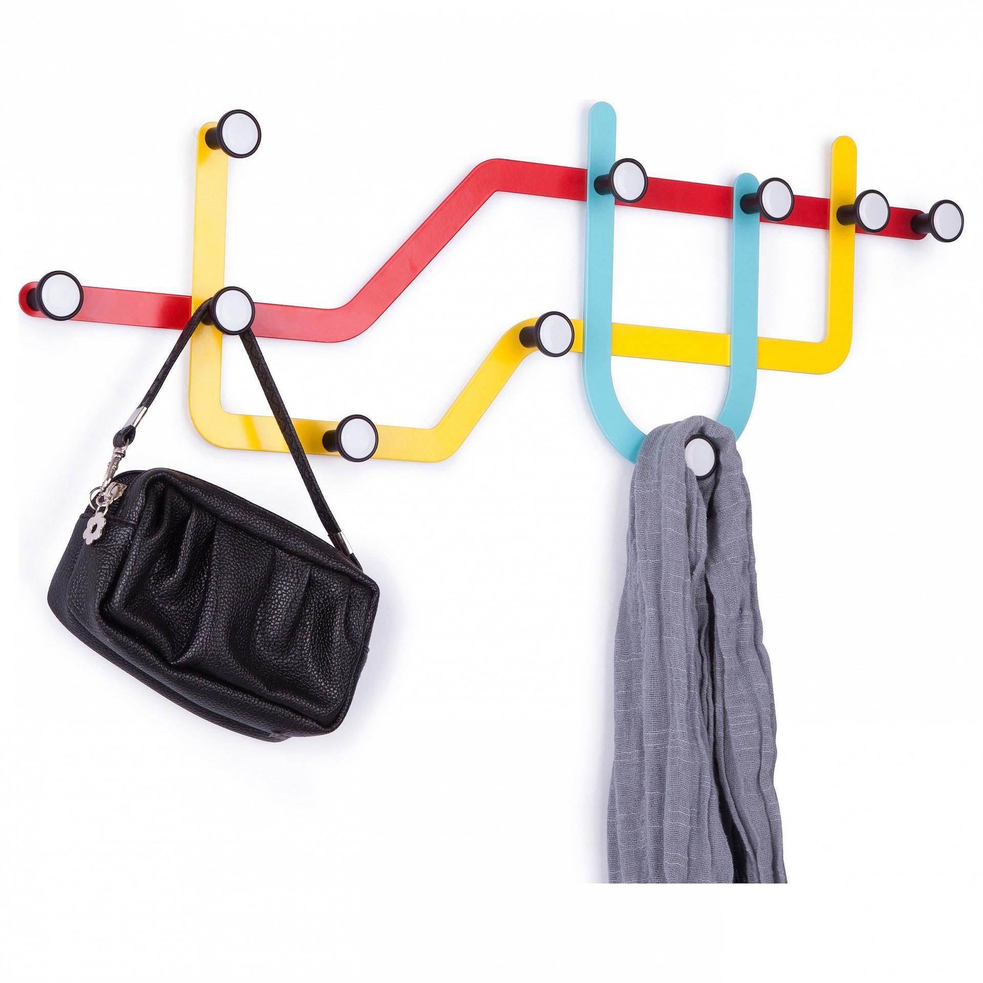 Когда все вещи находятся на своих местах – это залог уютного и аккуратного интерьера. Тем приятнее, когда зоной для хранения является вместительная и надежная вешалка настенная (57.5х20.5 см) Subway 318187-370 FD_318187-370. Данная модель создана компанией Umbra и входит в серию «». корпус вешалки выполнен из износостойкого материала (металл) и окрашен в благородный оттенок «разноцветный». Производитель предлагает комплектацию, в которую входит 10 крючков, крепеж. Вешалка настенная (57.5х20.