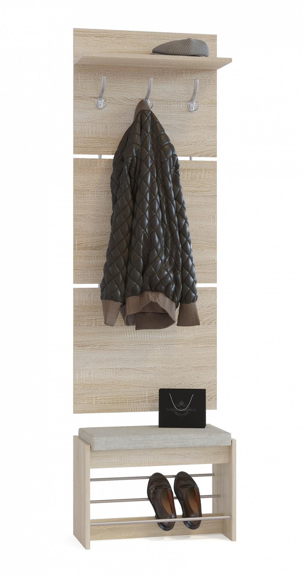 Когда все вещи находятся на своих местах – это залог красивого и аккуратного интерьера. Тем приятнее, когда зоной для хранения является вместительная и практичная вешалка с тумбой Груно ВШ-5.1+ТП-5 SK_47197. Данная модель изготовлена брендом Сокол и входит в серию «Груно». Матовый корпус вешалки выполнен из износостойкого материала (ЛДСП Е1) и окрашен в благородный оттенок «дуб сонома». Производитель предлагает комплектацию, в которую входит: вешалка настенная - 600x212x1460 мм;, банкетка-стеллаж для обуви - 600x281x438 мм. Вешалка с тумбой Груно ВШ-5.
