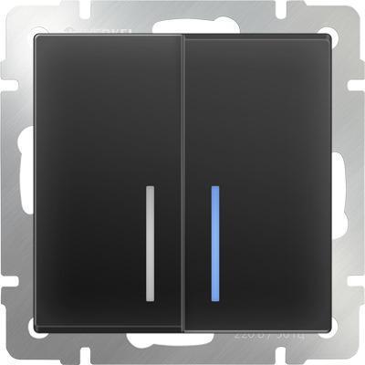 Выключатель двухклавишный с подсветкой (черный матовый)