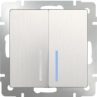 Выключатель двухклавишный с подсветкой (перламутровый рифленый)