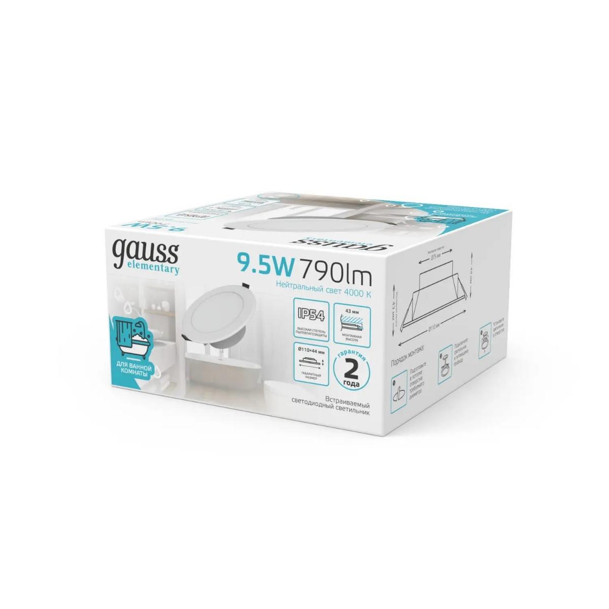 Встраиваемый светодиодный светильник Gauss Elementary Downlight 999420209