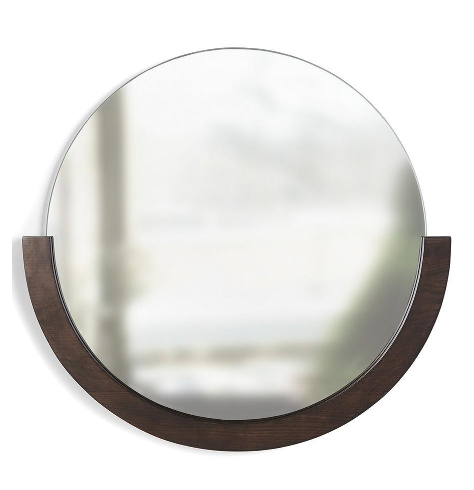 Круглое зеркало имеет деревянную полукруглую раму из натурального ясеня.